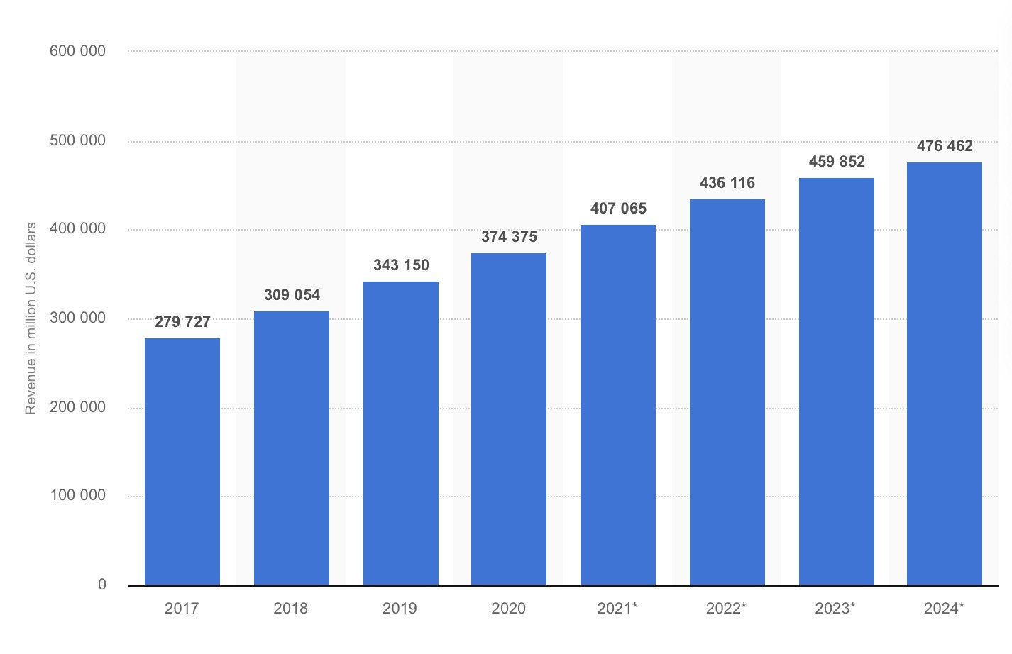 E-commerce of physical goods is a massive TAM (projected to reach 476.5 billion in 2024 and that number is pre-covid) and the opportunity to help the next generation create and sell their goods has never been more open.